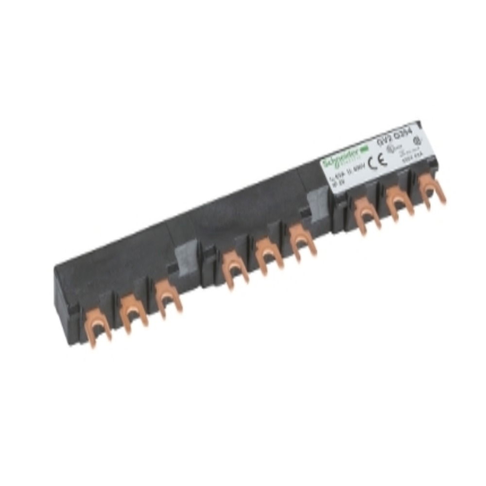 Este barramento pente Linergy permite a montagem de partida de motor, sendo um accessorio do Tesys Deca GV. Ele possui 3 fases e capacidade de 63A/690V para a fiação paralela a montante de grupos de motores de arranque compostos por disjuntores de motor GV2 ou porta-fusíveis LS1D32. Para uso com dispositivos terminais de aperto de parafuso, é composto por 5 saídas de derivação para o paralelismo de 5 dispositivos com tamanho de 54mm. A utilização de um bloco de terminais GV1G09 ou GV2G05 é recomendada para a alimentação dos conjuntos de barramentos (a serem solicitados separadamente). A oferta Linergy foi desenvolvida para ser utilizada no interior de quadros de distribuição funcionais e universais. Todos os sistemas de distribuição e ligação de Linergy foram concebidos e testados para funcionar em conjunto e com todos os dispositivos Schneider Electric. Os barramentos pente Linergy levam o selo Green PremiumTM, que promete conformidade com as mais recentes regulamentações, transparência nos impactos ambientais, produtos circulares e de baixo CO2.