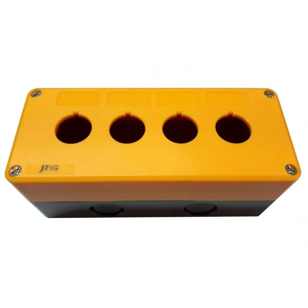 Tipo: Caixa Botoeira Marca: JNG Modelo: BMX101 Código Fabricante: 13971 Cor: Amarelo Diâmetro dos furos: 22,5 Temperatura do trabalho: -20°C +60°C
