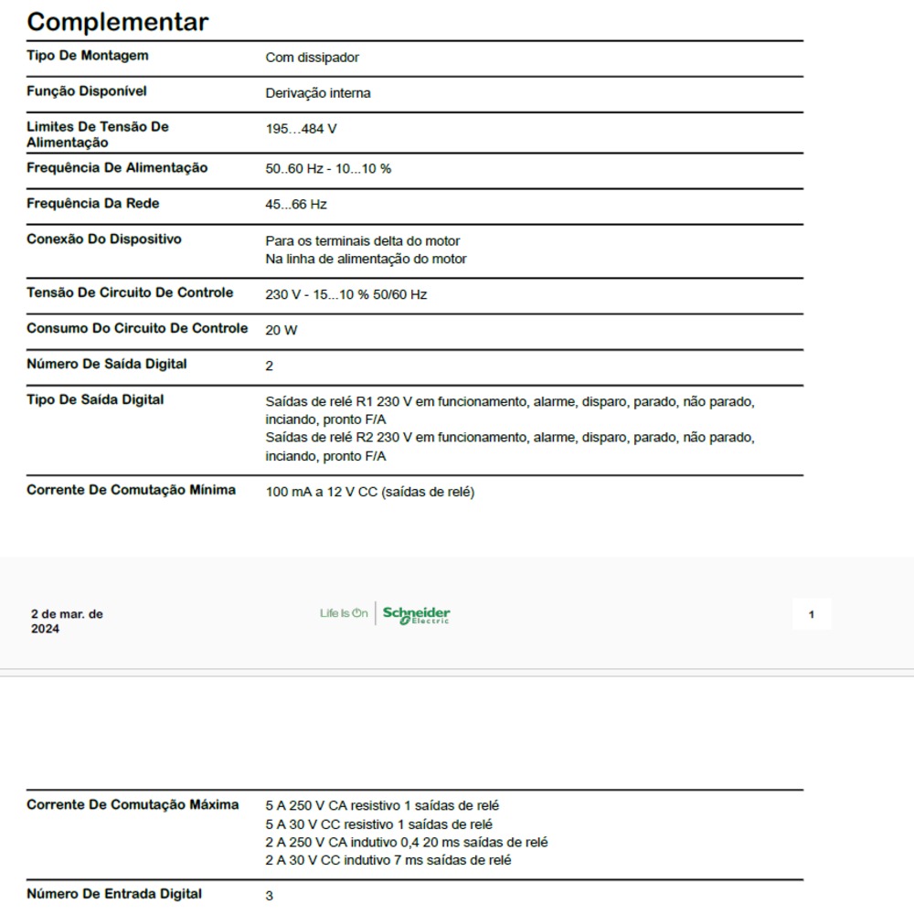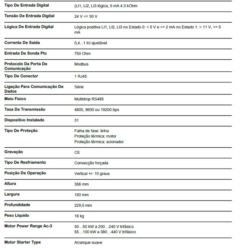 As Soft Starters ATS22 permitem uma partida e parada suave, evitando estresse mecânico e prolongando a vida útil da máquina. As mesmas foram projetadas para atender máquinas simples e complexas, como bombas, ventiladores, compressores e equipamento de manuseio de materiais. O modelo ATS22C17Q, pode alimentar motores assíncronos com corrente de 170A, possui tensão trifásica de 200…240Vac e uma potência nominal de até 90kW para motores com fechamento normal, e de até 132kW para fechamento em delta.
